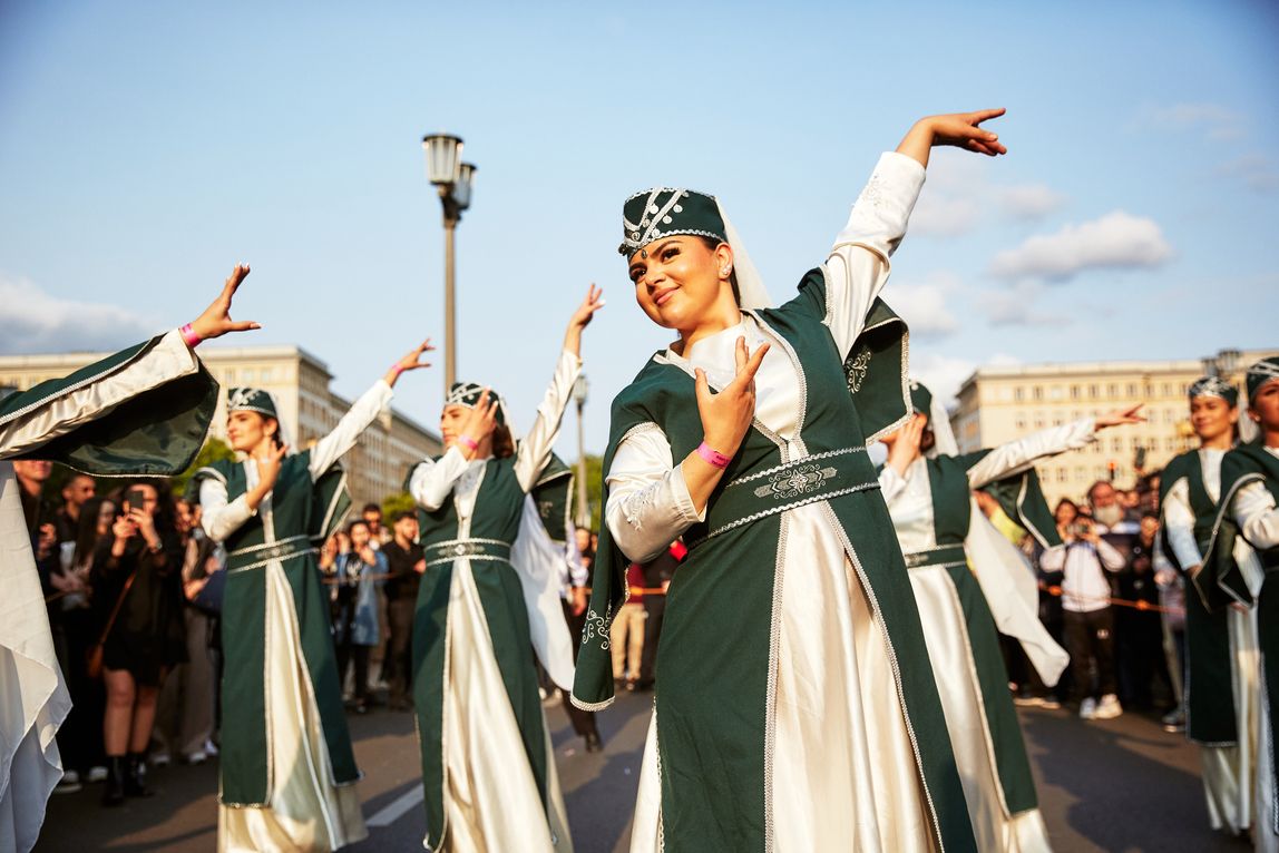 Das Aserbaidschanische Kulturhaus Khari-Bülbül e.V. Berlin präsentiert beim Karnevalsumzug die Vielfalt der aserbaidschanischen Kultur mit traditionellen Tänzen, Musik und farbenprächtigen nationalen Kostümen. Unsere Gruppe steht für kulturelles Erbe, Gemeinschaft und Lebensfreude. Mit Rhythmus, Bewegung und Offenheit schaffen wir Begegnungen zwischen Kulturen und bringen die lebendige Atmosphäre Aserbaidschans auf die Straßen Berlins.