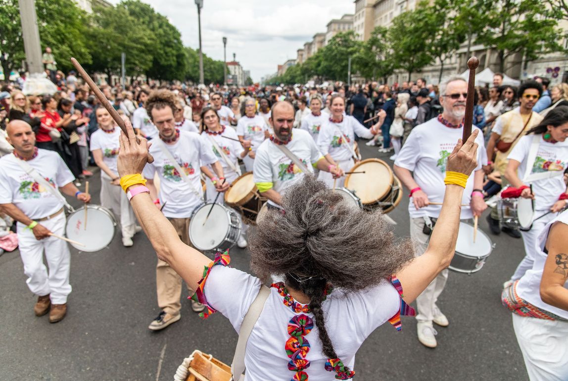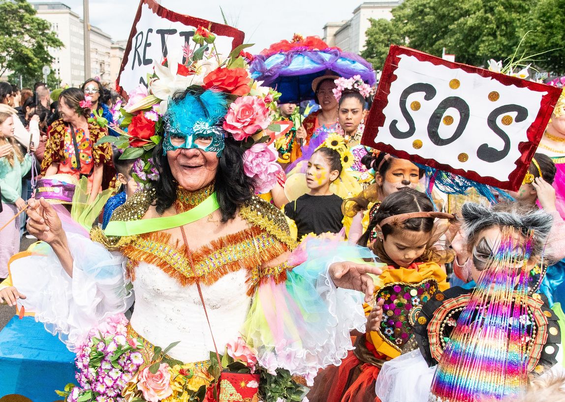 Frieden ist nicht garantiert. Während Reiche und Mächtige Völker gegeneinander aufbringen, vertiefen sich Ungleichheiten weltweit. Umso wichtiger ist es, sich aktiv für Frieden einzusetzen. Der Karneval der Kulturen blüht auf den Straßen Berlins als Ort der Begegnung, an dem Gesten, Gesang und Körper eine mögliche Harmonie feiern. Das Maracatu-Treffen dankt dem KdK für 30 Jahre Widerstand und erinnert daran, dass ein Leben in Frieden ein grundlegendes Recht aller Menschen ist.