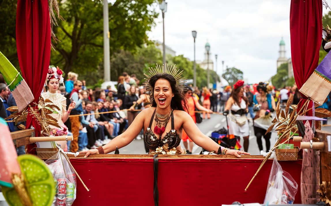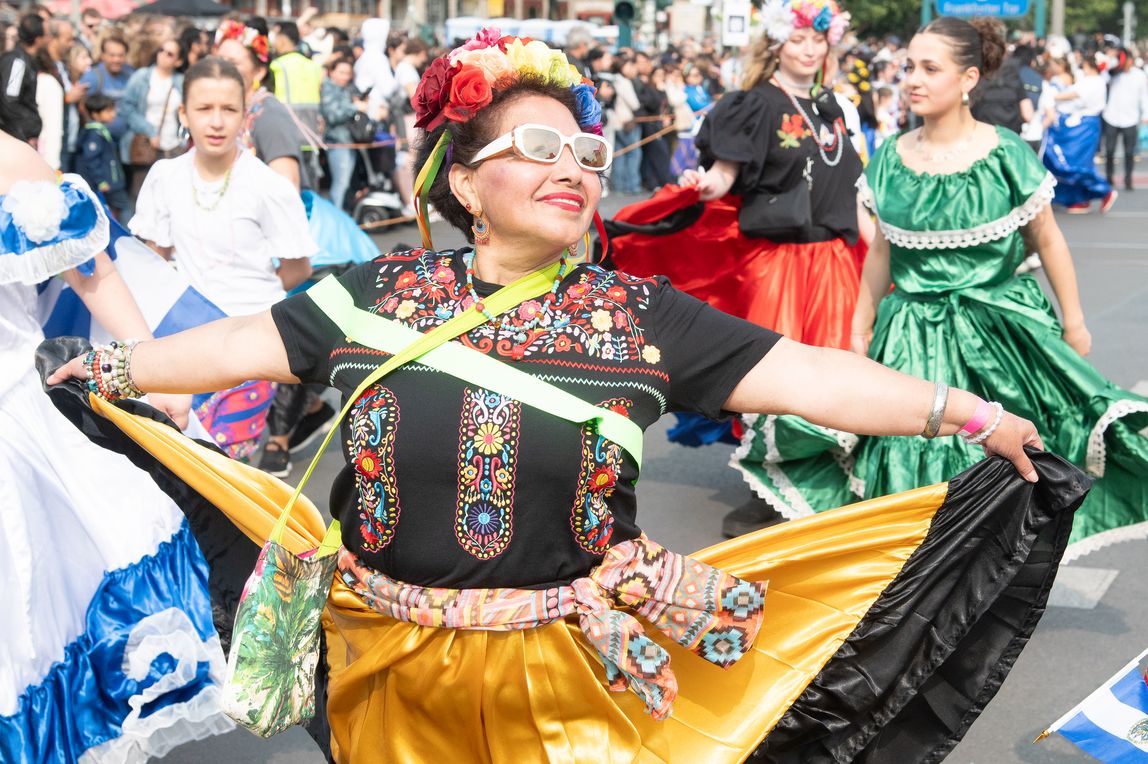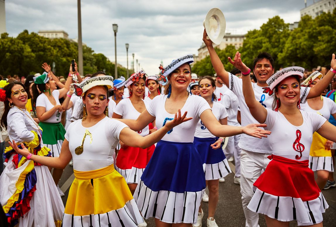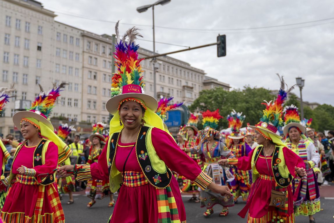 Zum 10-jährigen Jubiläum ihrer Teilnahme am Karneval der Kulturen bringt Grupo Chile Berlin e.V., wie schon vor zehn Jahren, den chilenischen Nationaltanz La Cueca auf die Straßen Berlins. Mit wirbelnden Tüchern, rhythmischen Schritten und farbenfrohen Trachten entsteht ein lebendiges Bild von Erinnerung und Begegnung. Die Performance schlägt eine Brücke zwischen Chile und Berlin und wird getragen von Menschen unterschiedlicher Herkunft, die gemeinsam die Vielfalt und Freude des Karnevals feiern.