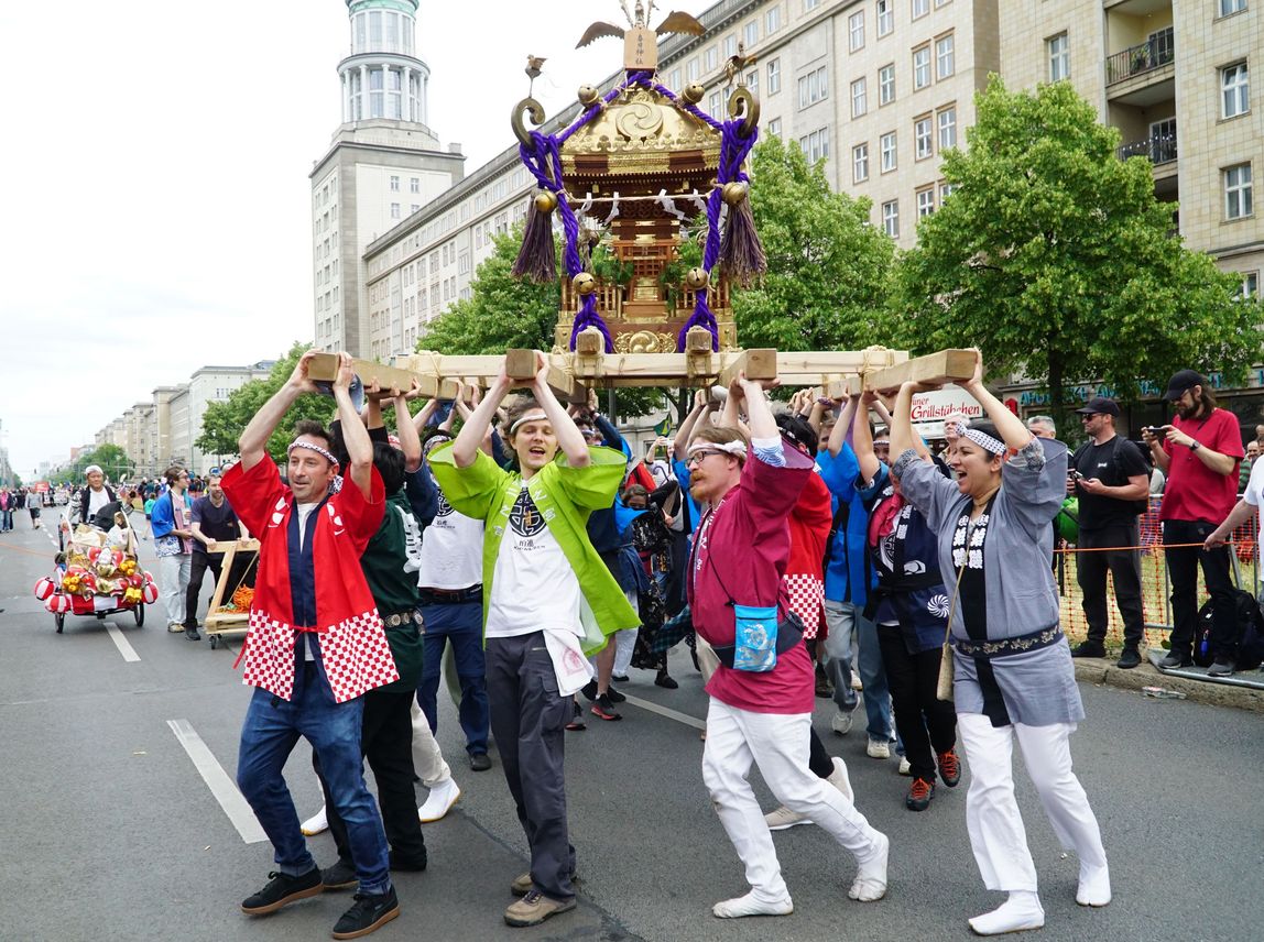 Wasshoi, wasshoi! Wir von Kashiwa-ren präsentieren einen Mikoshi, einen mobilen Schrein, der bei vielen lokalen Festumzügen in Japan prachtvoll durch die Straßen getragen wird. Ein Mikoshi ist so schwer, dass er nicht allein, sondern nur in aktiver Zusammenarbeit mit anderen getragen werden kann. In der kulturellen Vielfältigkeit aller Teilnehmer wollen wir die Diversität dieser Stadt zelebrieren und mit geeinten Kräften und der Leidenschaft jedes Einzelnen ein bleibendes Erlebnis für alle Beteiligten schaffen.